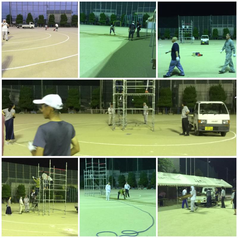 昨夜は地域の皆さんで準備をしてくださいました。テント設営、やぐらの組み立て、音響や電源の準備、机だしなどなど。
